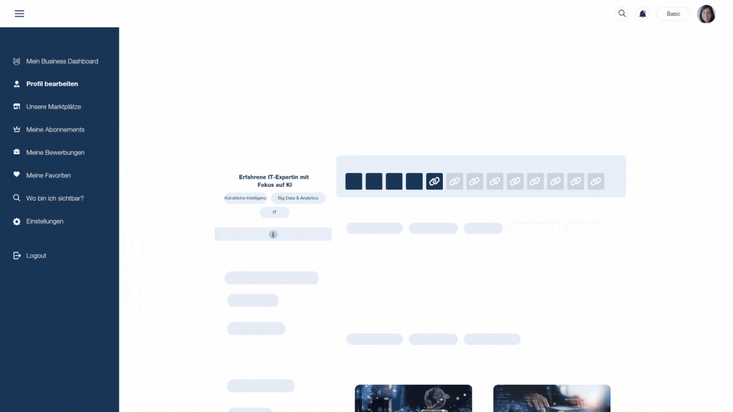 Mit unserem KI-basierten Konzept und einem eigenen Entwicklungsteam herausragender Informatiker und Expert:innen setzen wir neue Maßstäbe im Interim Management. Unternehmen können auf unserer Plattform ohne Aufwand und provisionsfrei nach den besten Expert:innen suchen. Wir stellen ein Elite-Portal zur Verfügung und sorgen dafür, dass sich jede*r wirklich echte Interim Executive & Consultant mit dem gewünschten Status per Abo frei sichtbar machen kann – effizient, transparent und auf höchstem Niveau.
